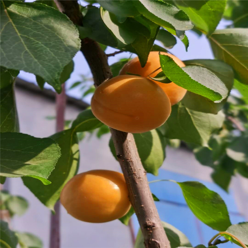荷蜜杏:荷兰引进6月底7月初成熟,属于晚熟品种,正好是市场杏的空白期,市场售价高。口感好,在6成熟的时候很甜了,8成熟的时候没有一点酸味,杏核也可食用。果个30克左右,皮厚耐储存,冷藏40天以上。四:自花授粉。