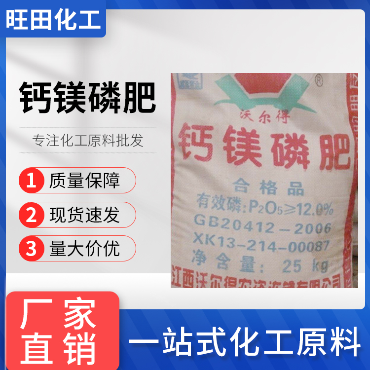 钙镁磷肥是用磷矿与硅酸镁矿物配制的原料,在电炉、高炉或平炉中于1350~ 1500 ℃熔融,熔体用水骤冷,形成粒度小于2 mm的玻璃质物料,经干燥磨细后成为产品。钙镁磷肥又称熔融含镁磷肥fused calcium-magnesium phosphate(fertilizer) ,是一种含有磷酸根(PO43-)的酸盐玻璃体。主要成分包括Ca3(PO4)2、CaSiO3、MgSiO3。是一种多元素肥料,水溶液呈碱性,可改良酸性土壤,培育大苗时作为底肥效果很好,植物能够缓慢吸收所需养分。